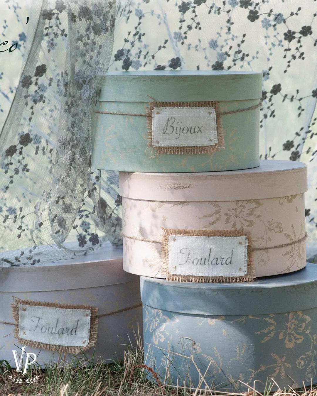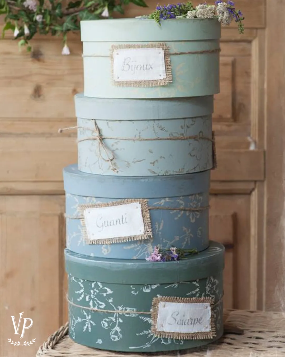 scatole rotonde in cartone da decorare con la vintage chalk paint